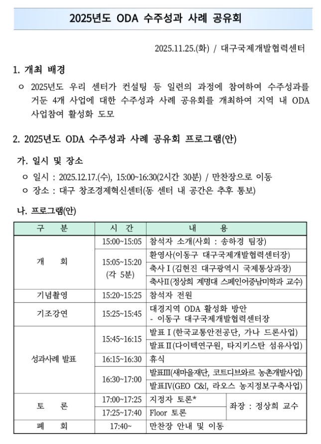 [대구국제개발협력센터]2025년도 ODA 수주 성과사례 공유회